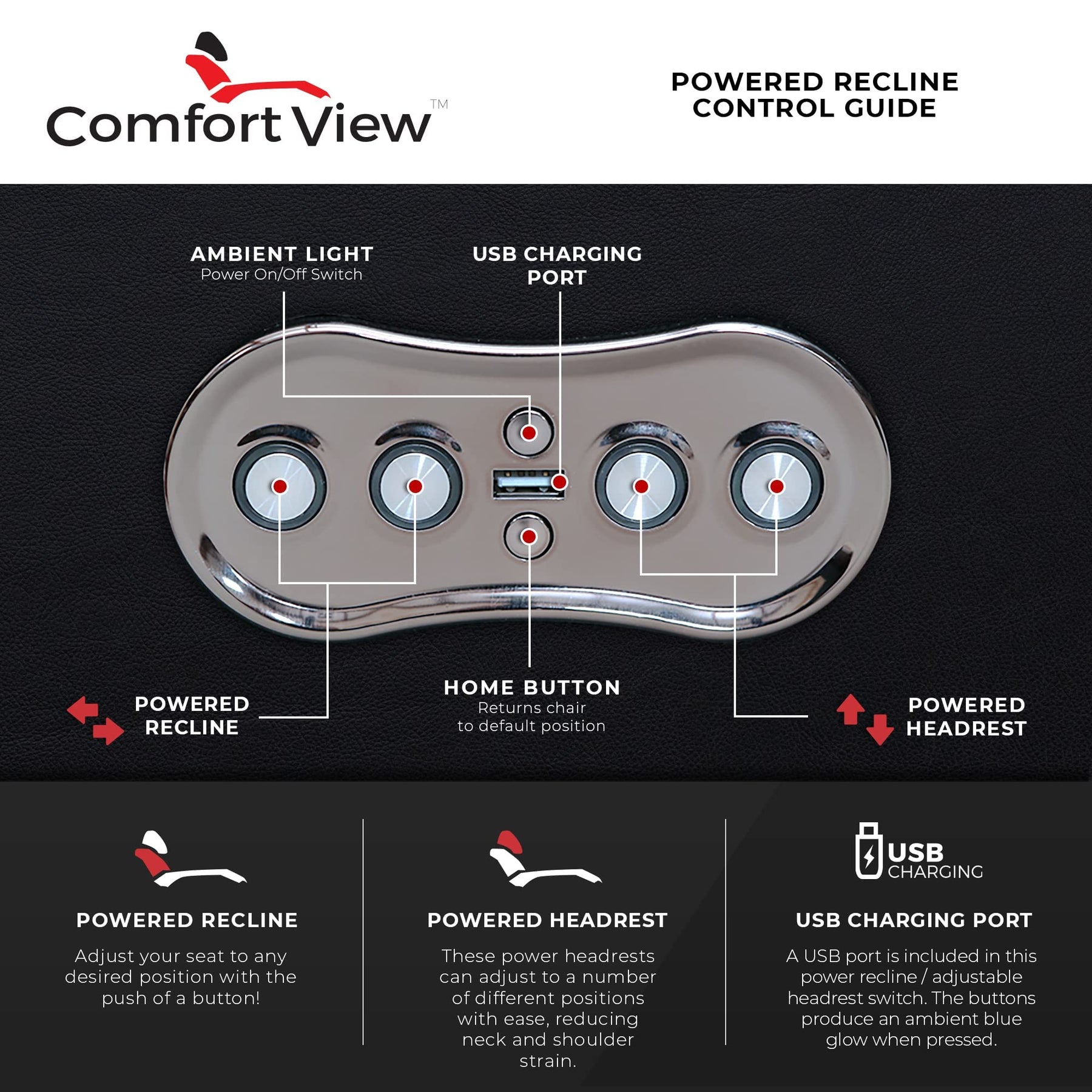 - Powered Headrest - Easily adjust the powered headrest function for maximum neck support