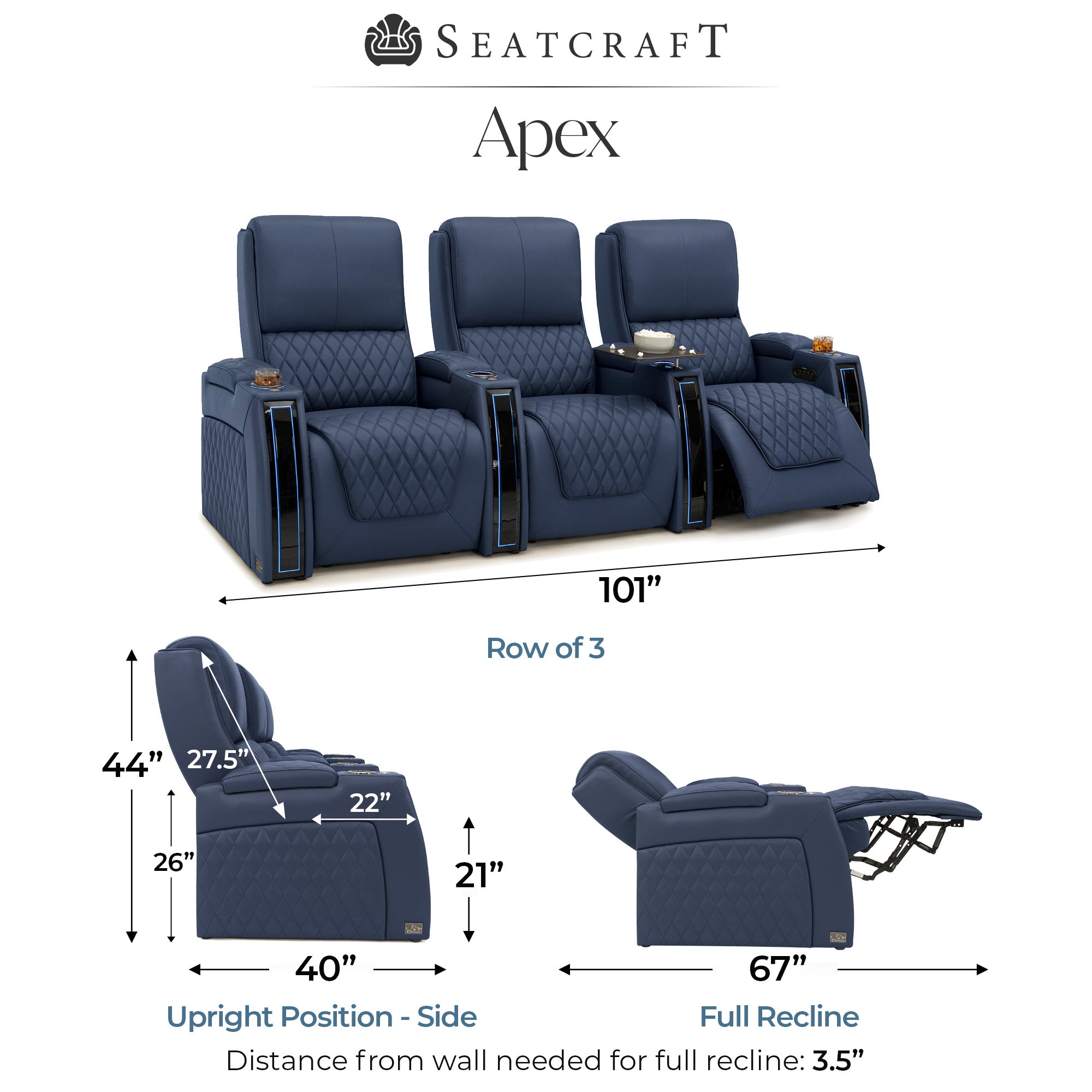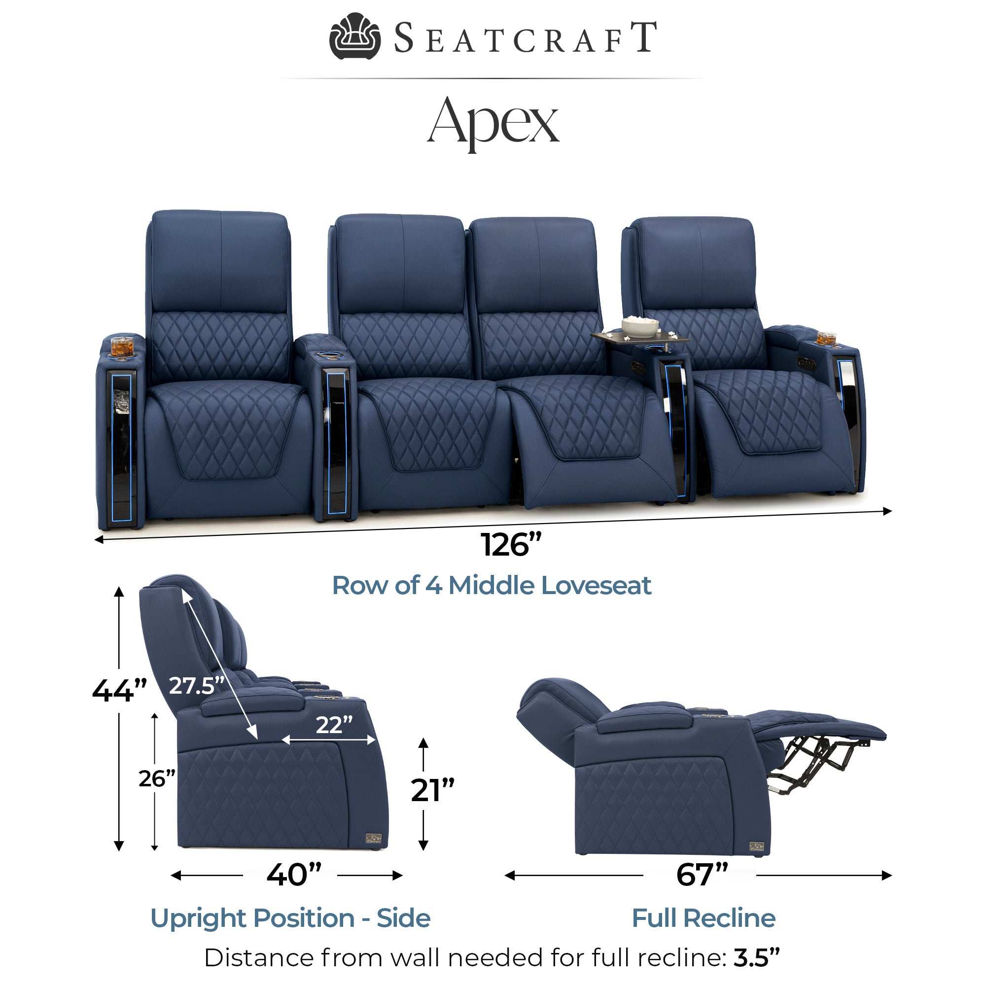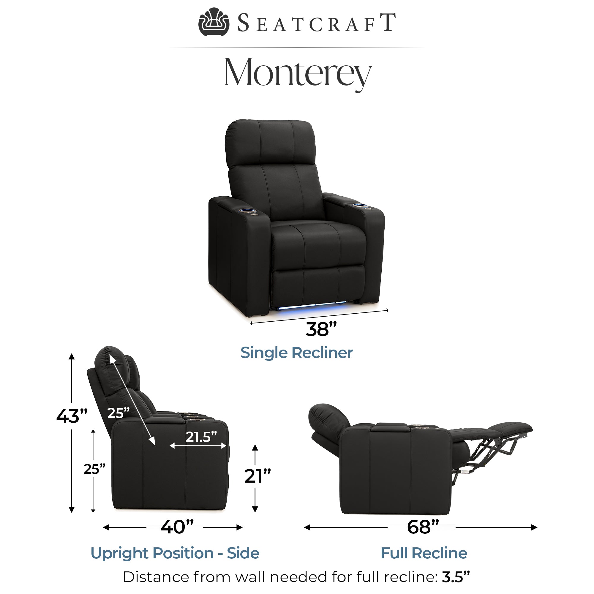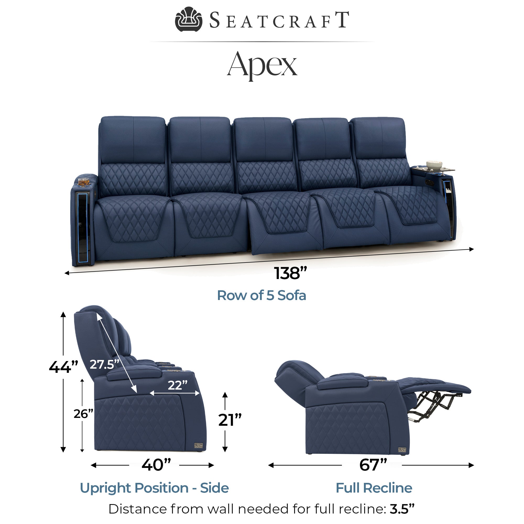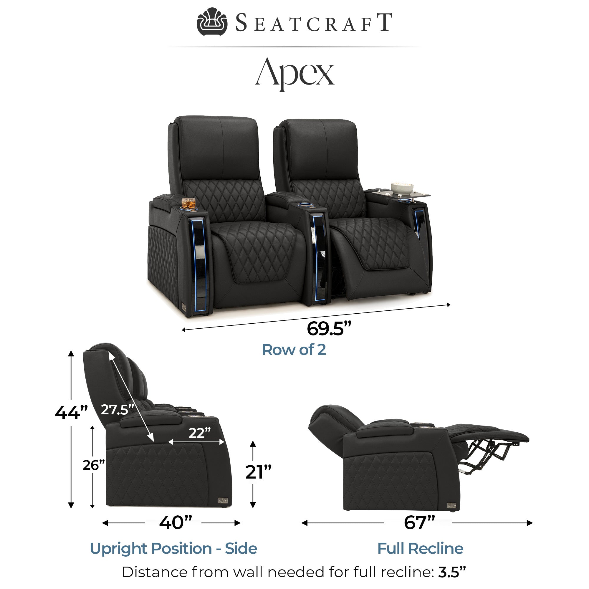 Designed specifically for home theaters and media rooms, not standard living room seating. The proportions, support, and recline angles are engineered to enhance long movie nights and immersive viewing.
