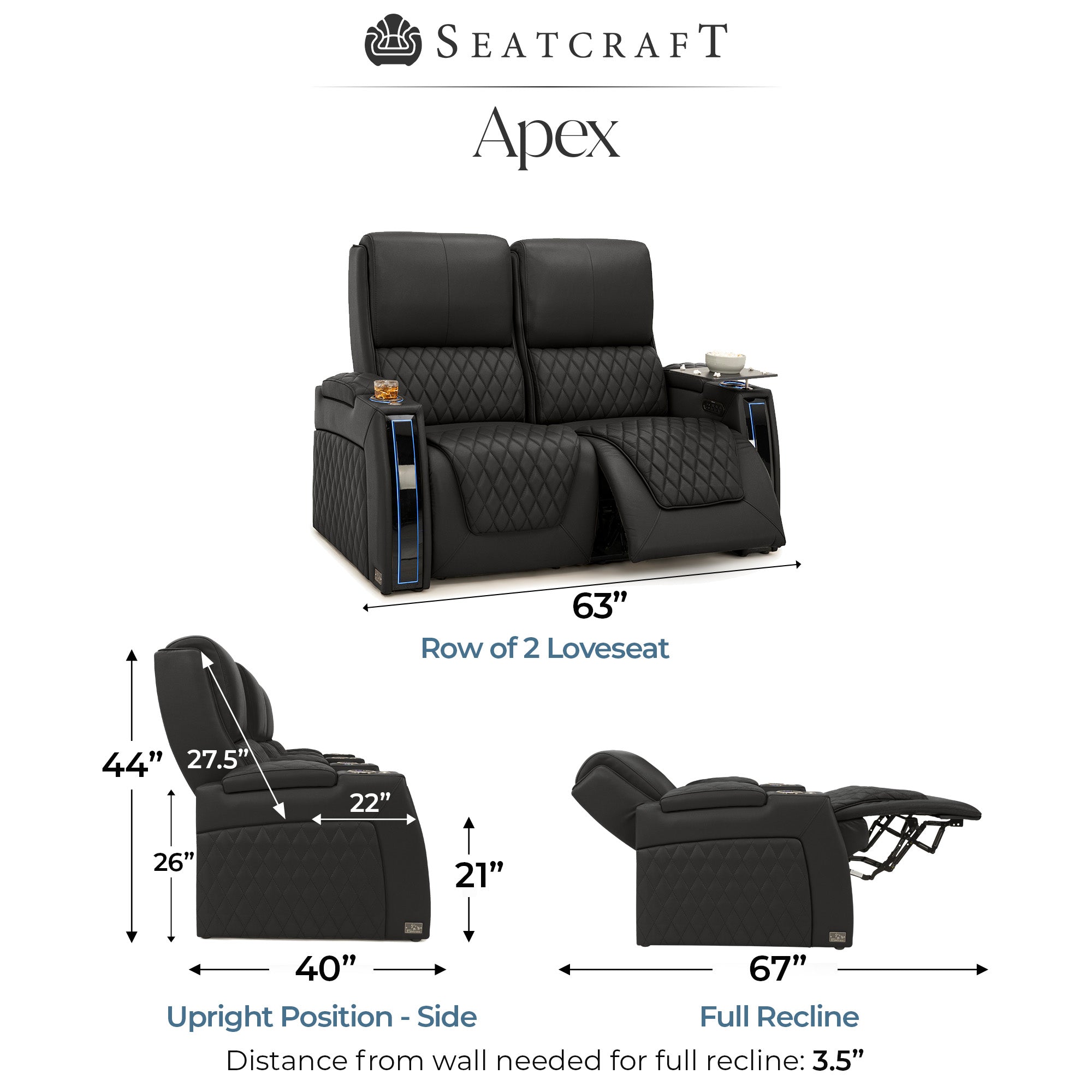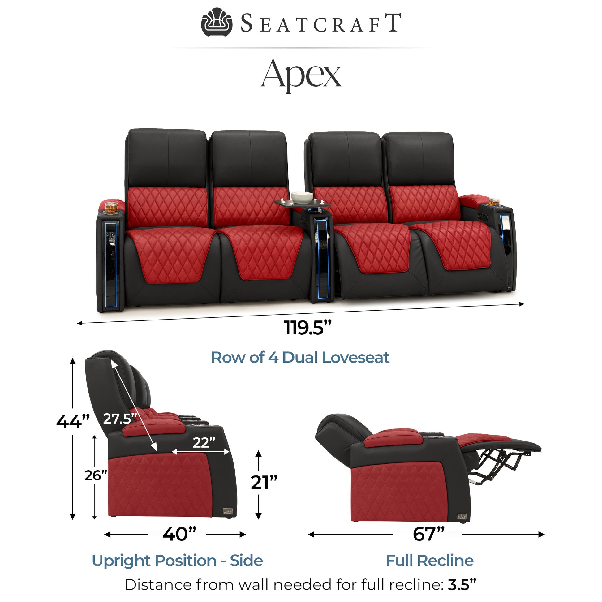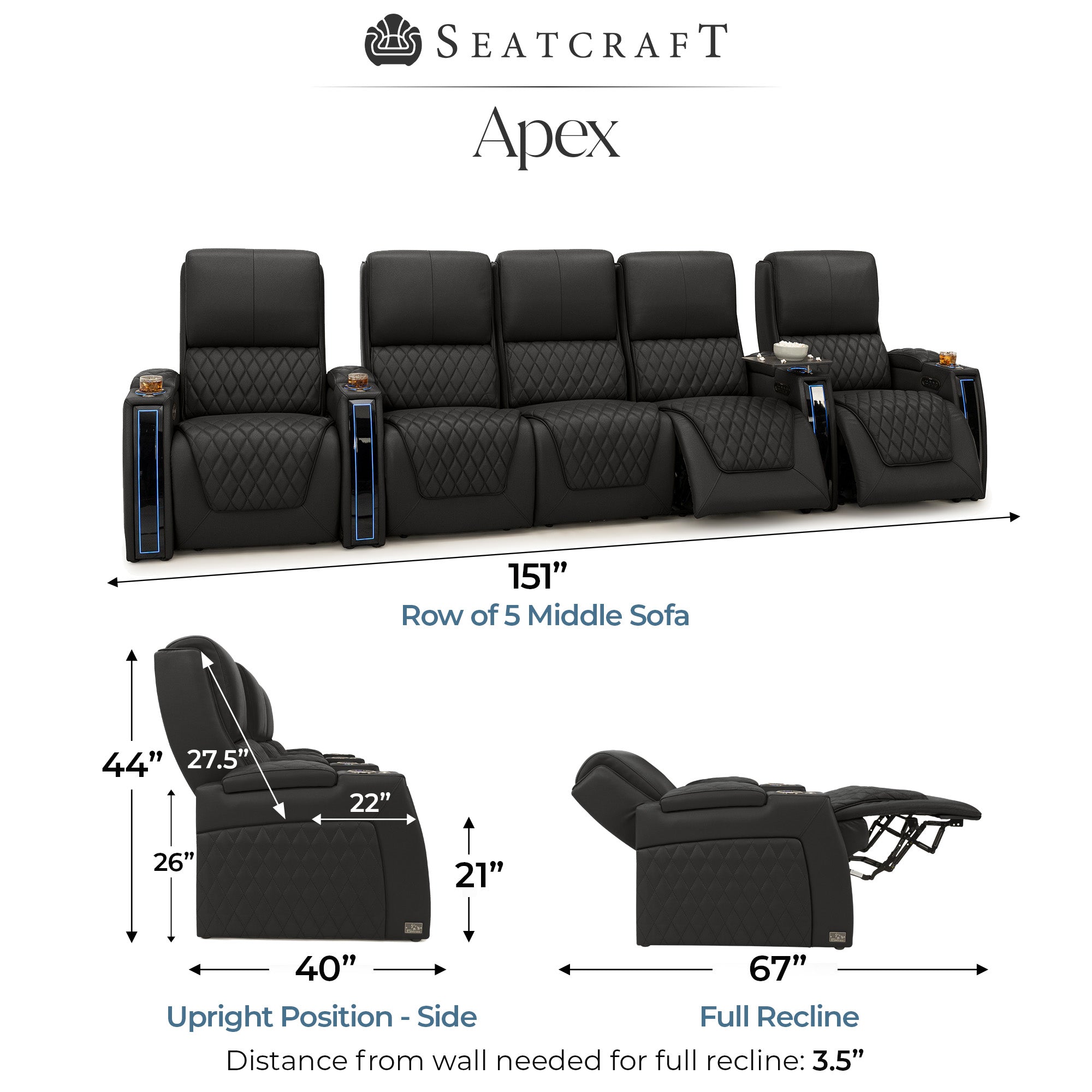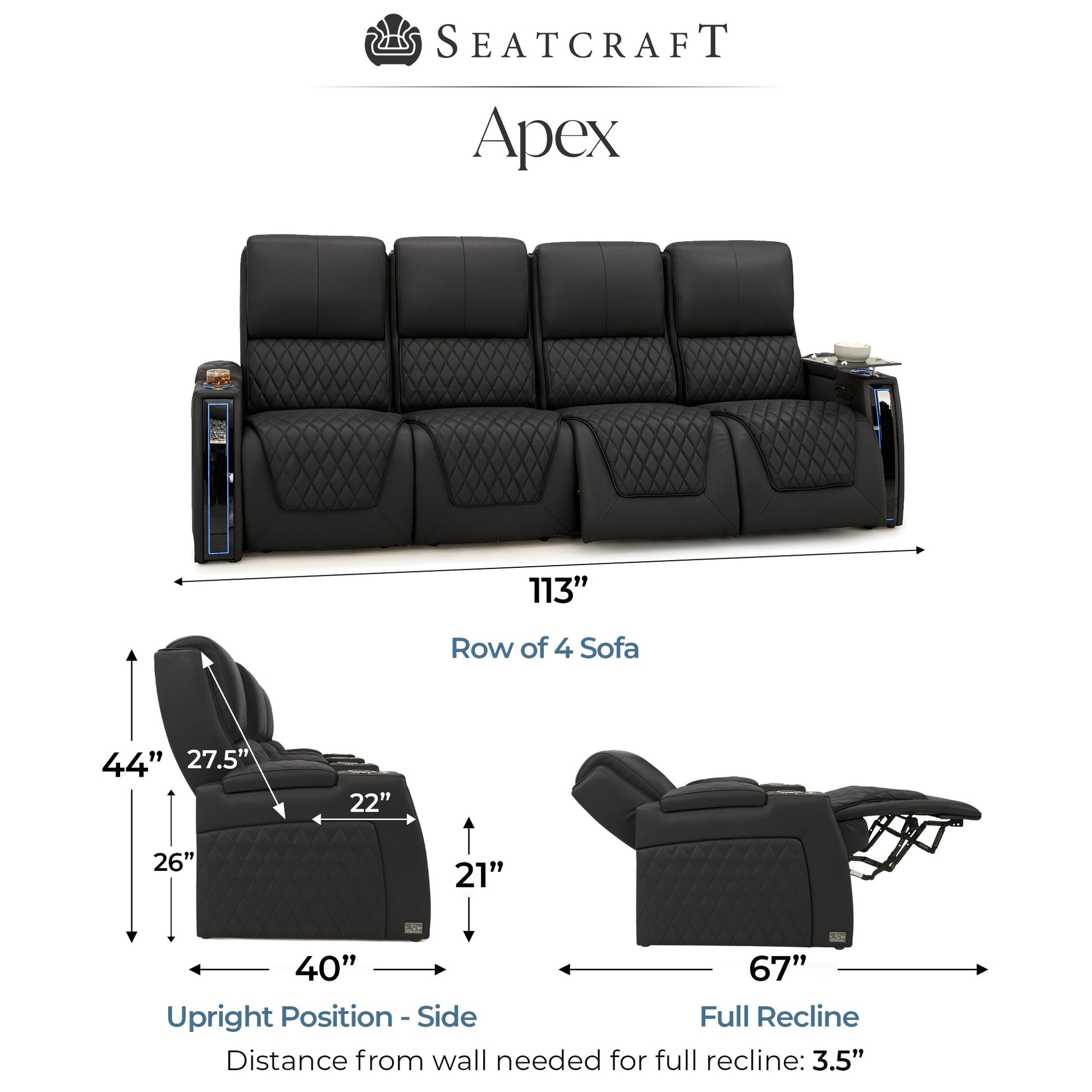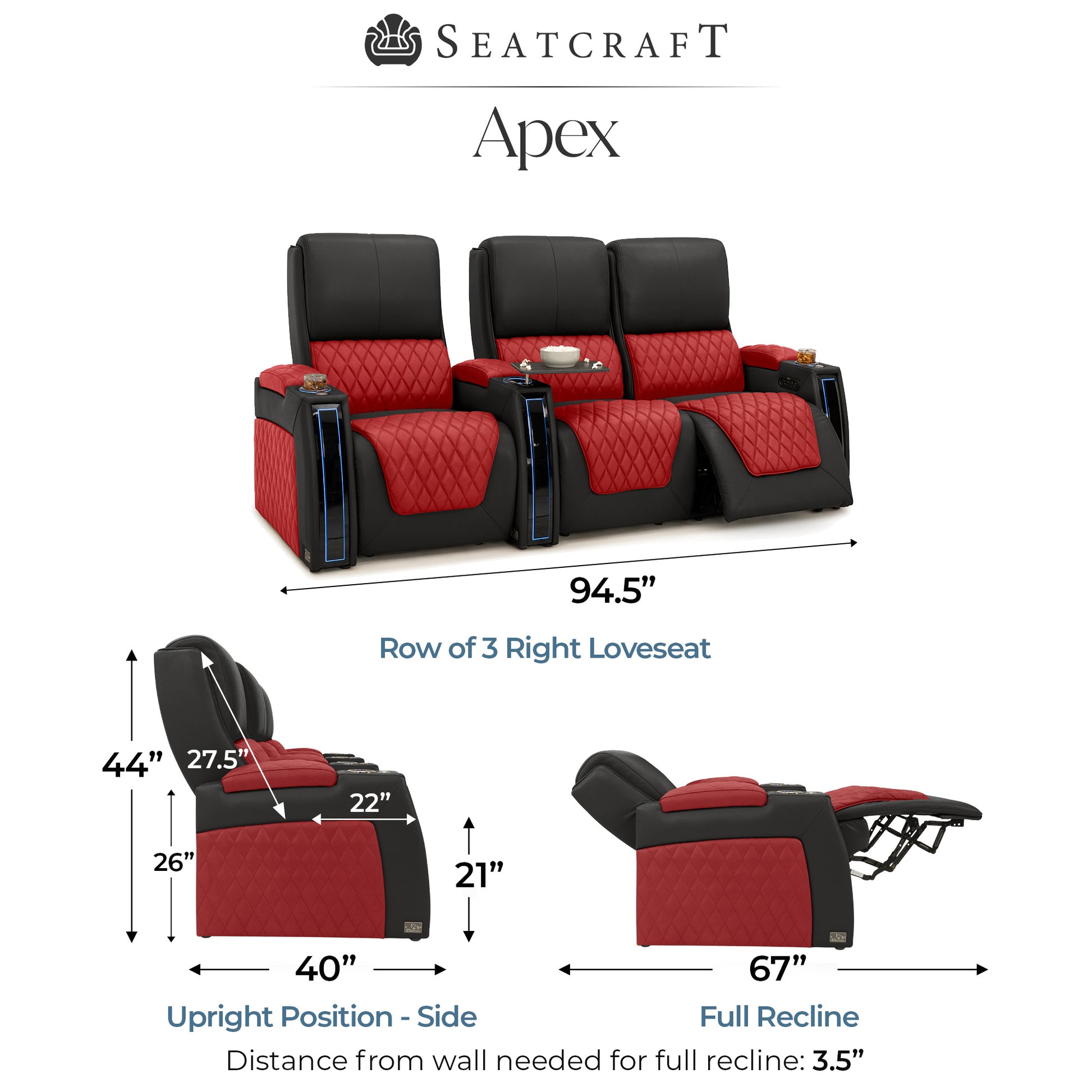 Designed specifically for home theaters and media rooms, not standard living room seating. The proportions, support, and recline angles are engineered to enhance long movie nights and immersive viewing.