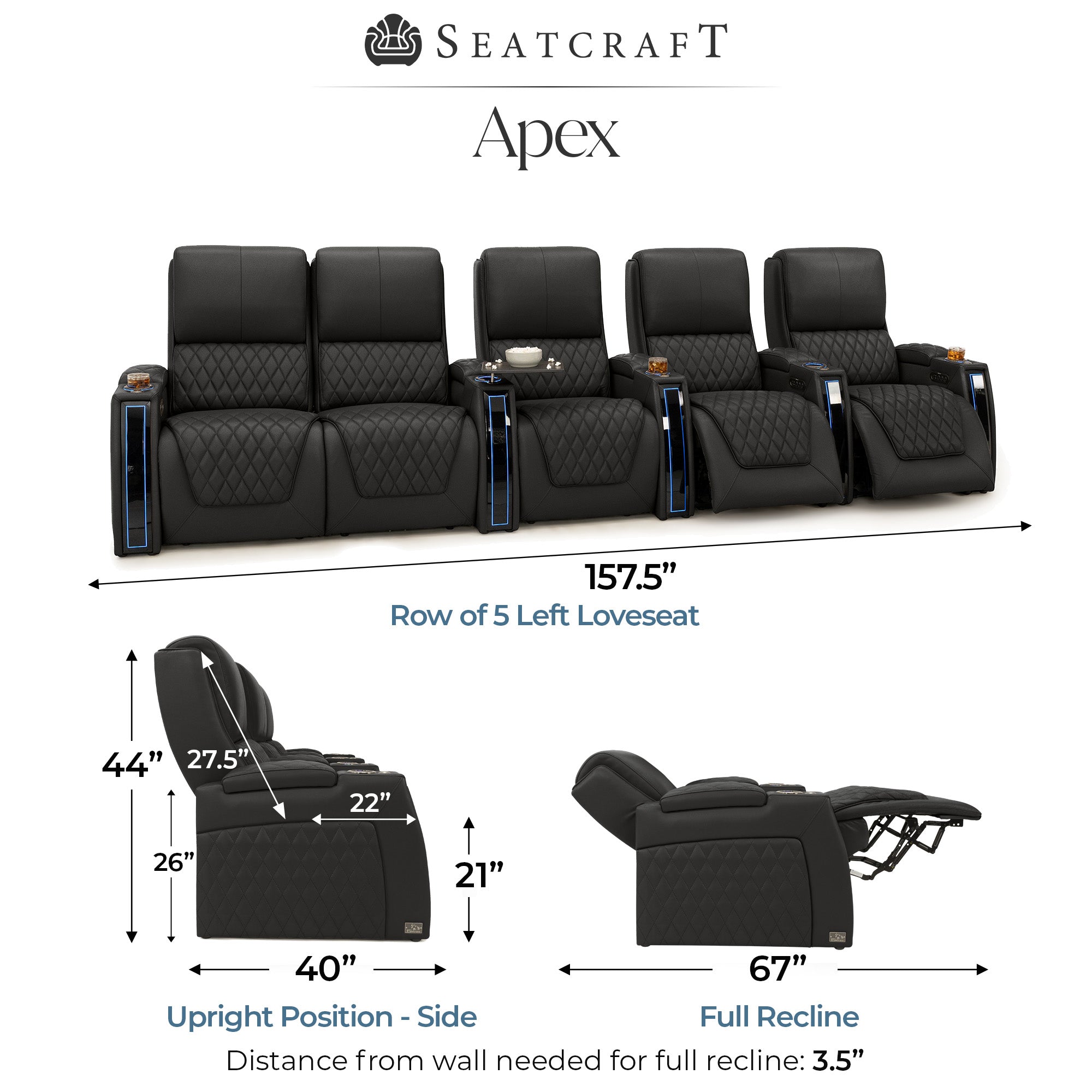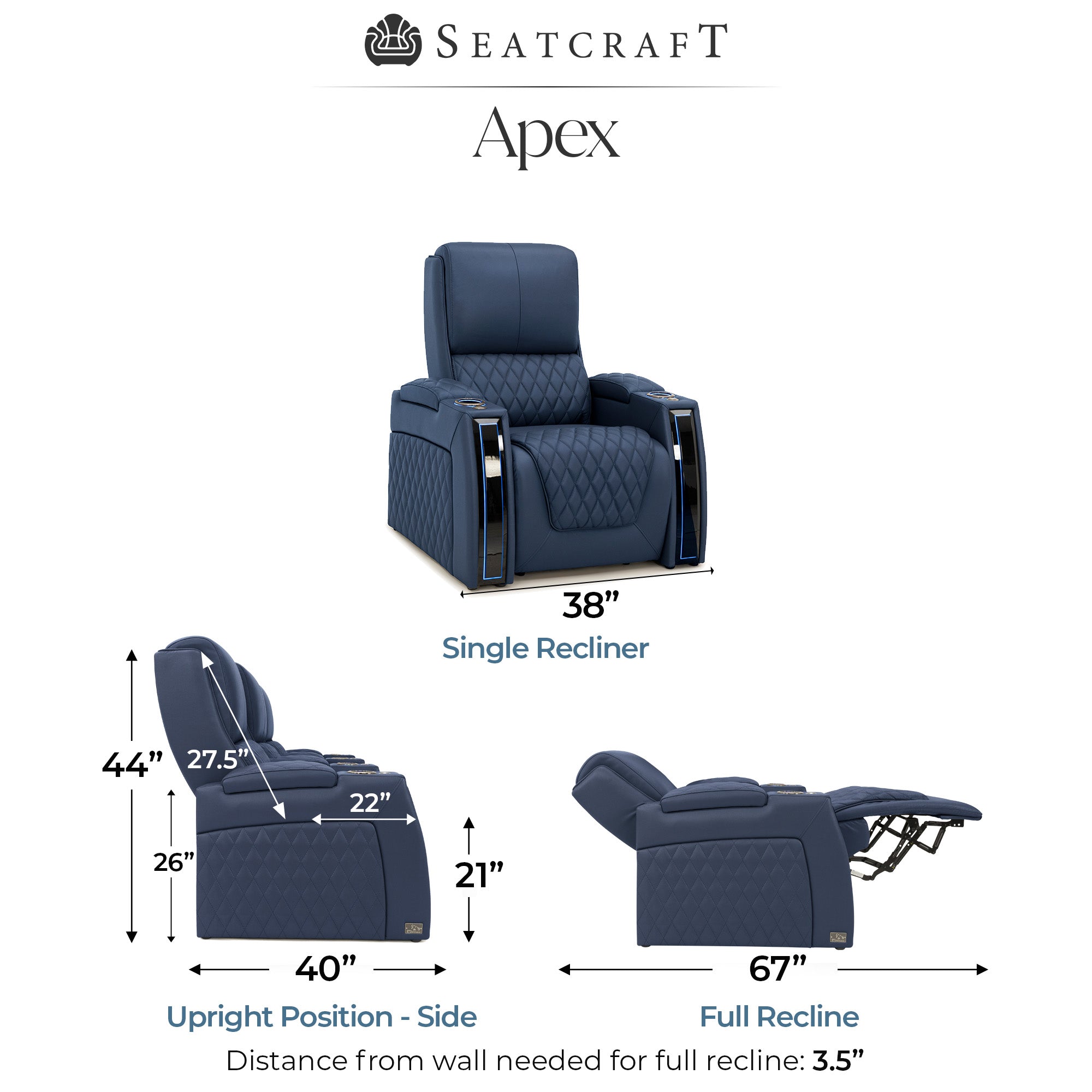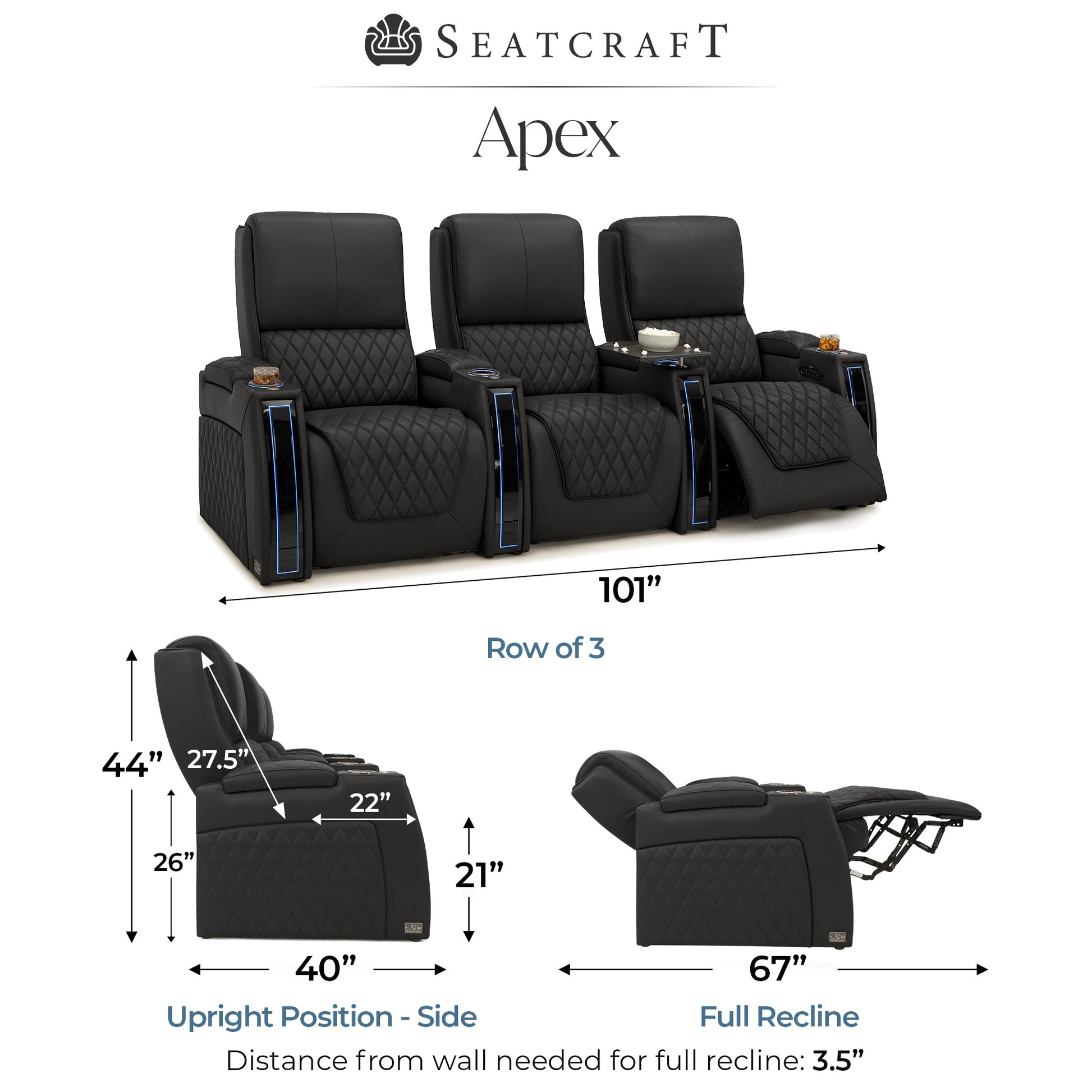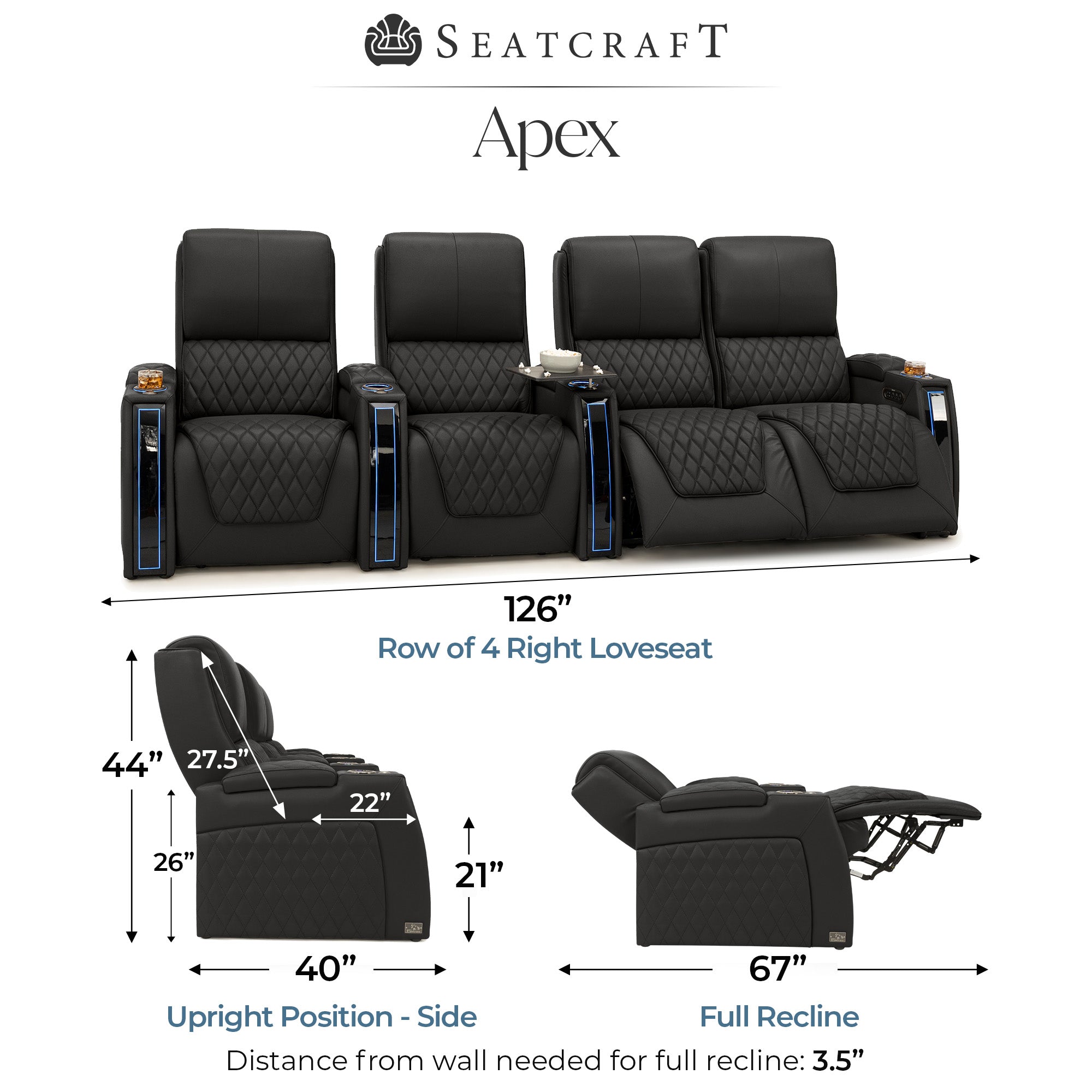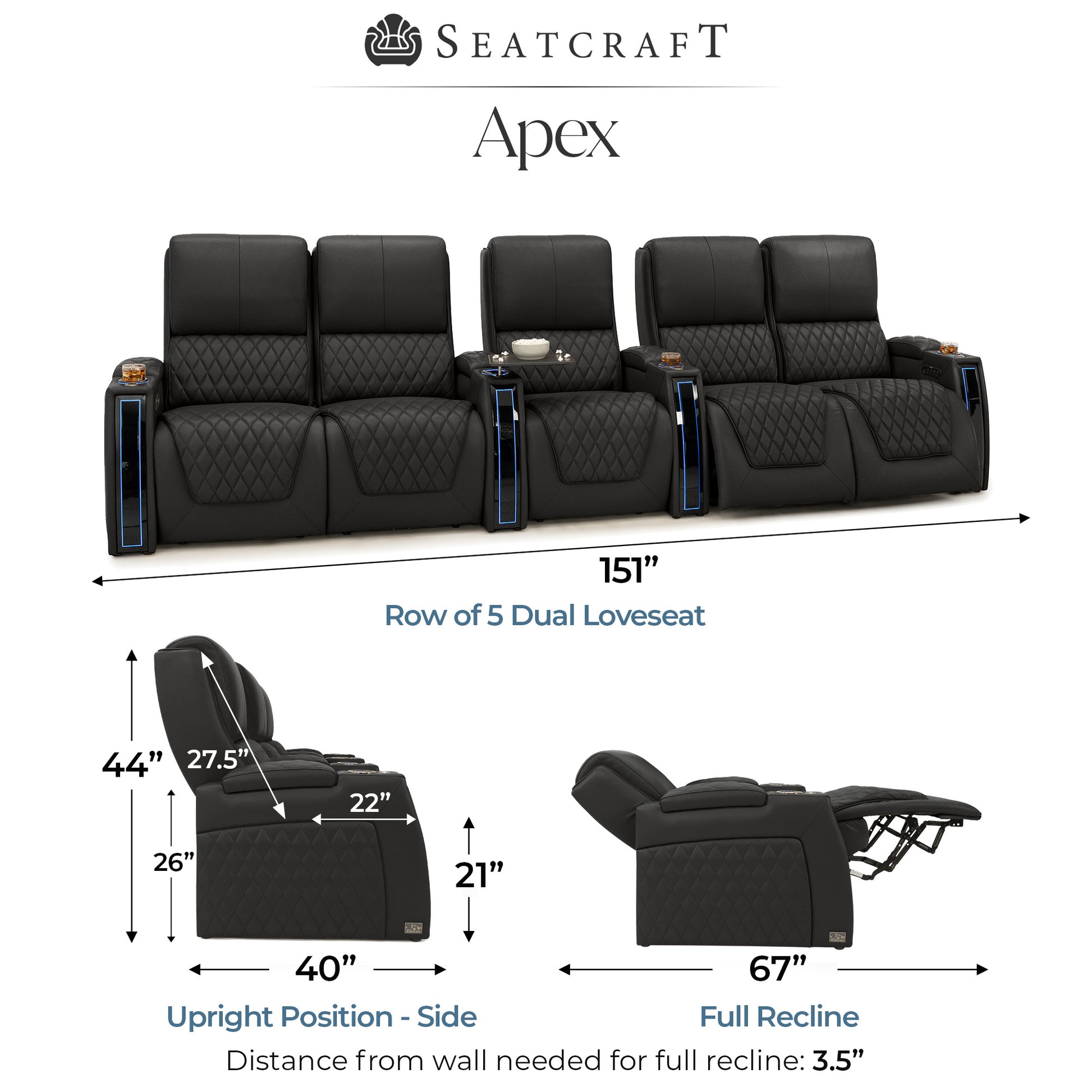 Designed specifically for home theaters and media rooms, not standard living room seating. The proportions, support, and recline angles are engineered to enhance long movie nights and immersive viewing.