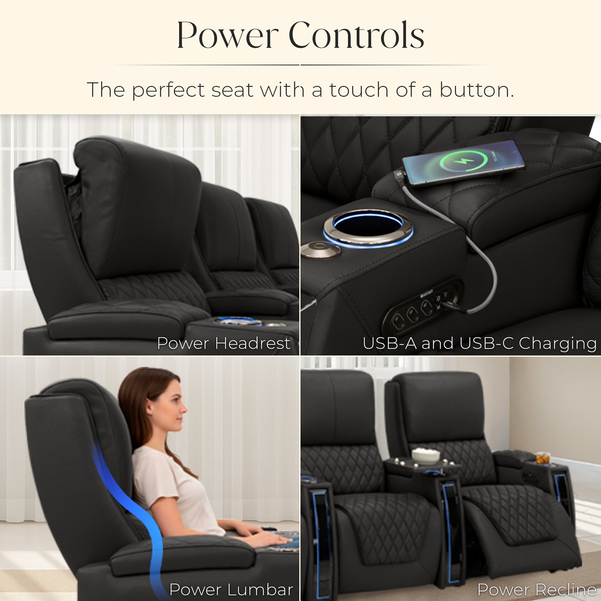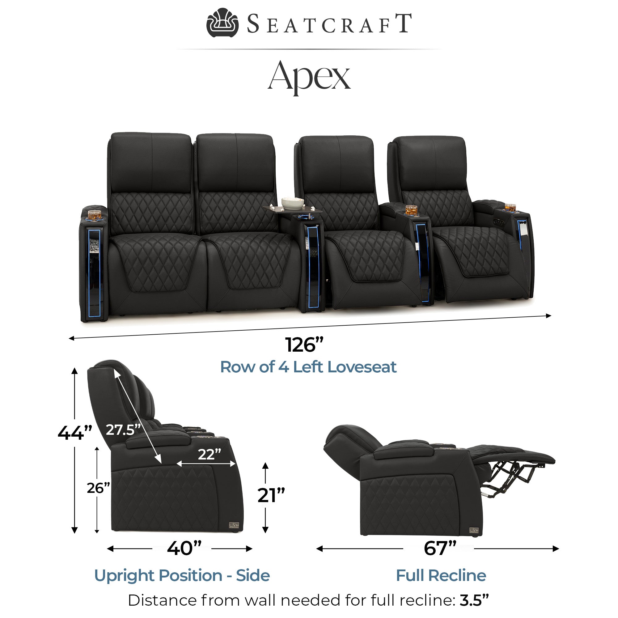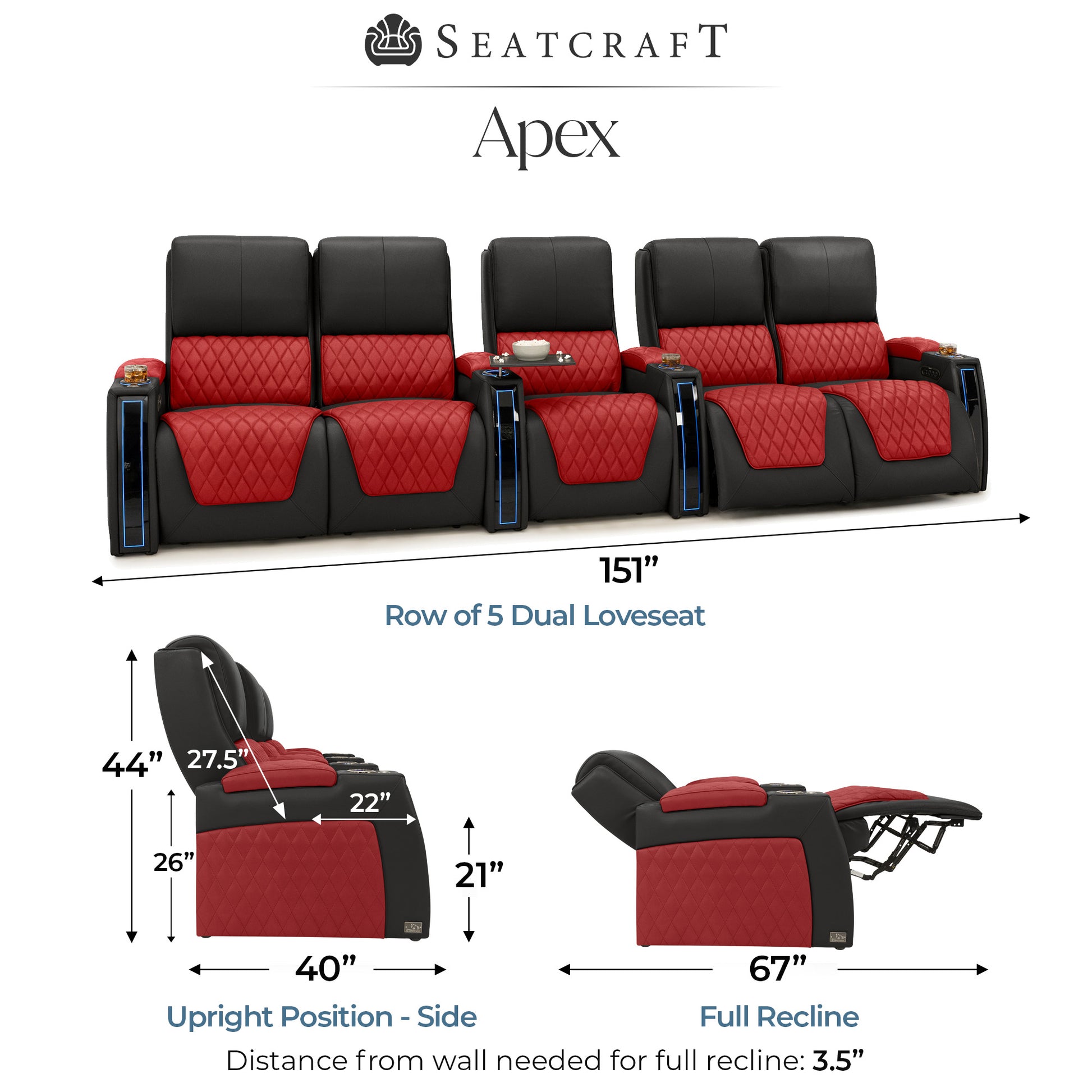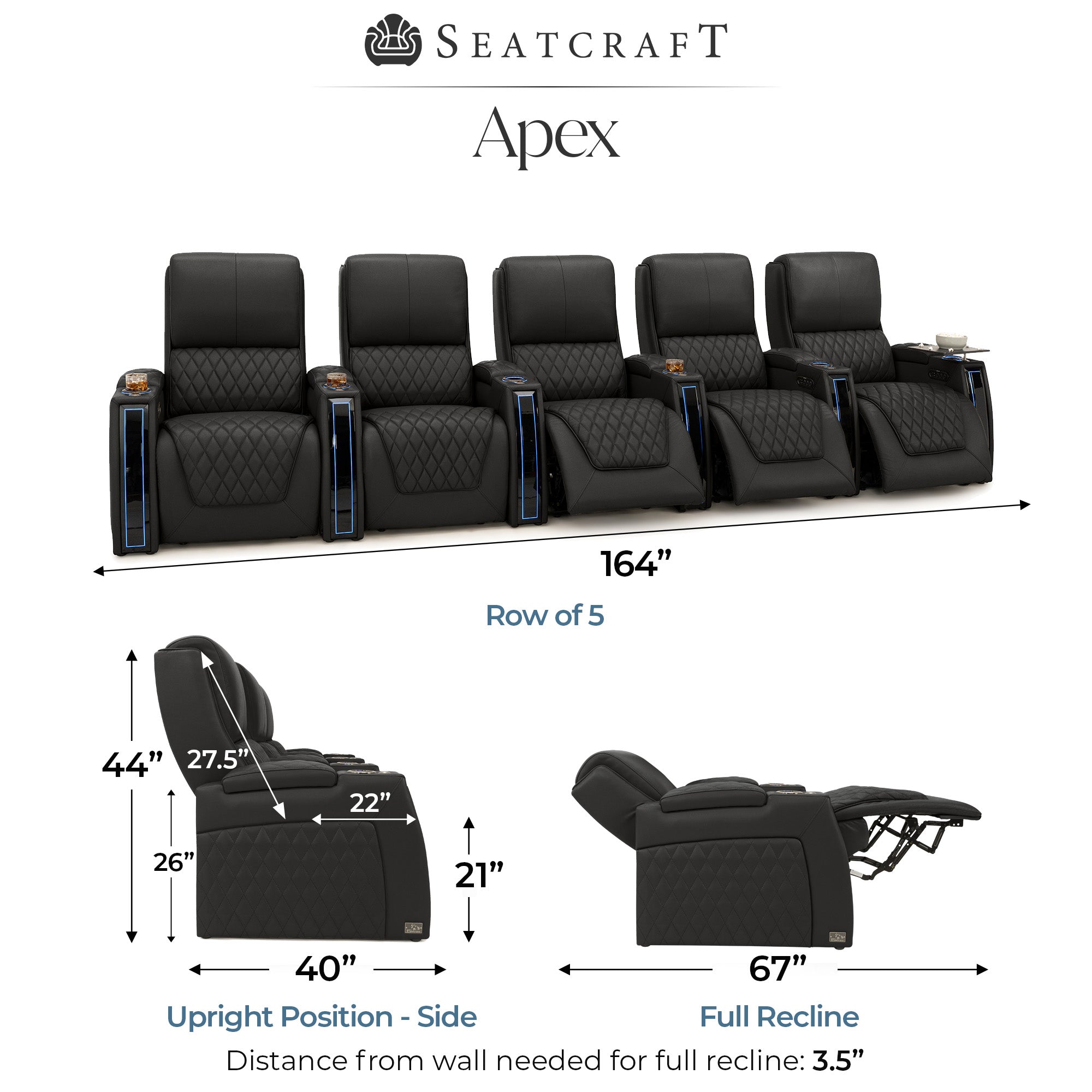 Designed specifically for home theaters and media rooms, not standard living room seating. The proportions, support, and recline angles are engineered to enhance long movie nights and immersive viewing.