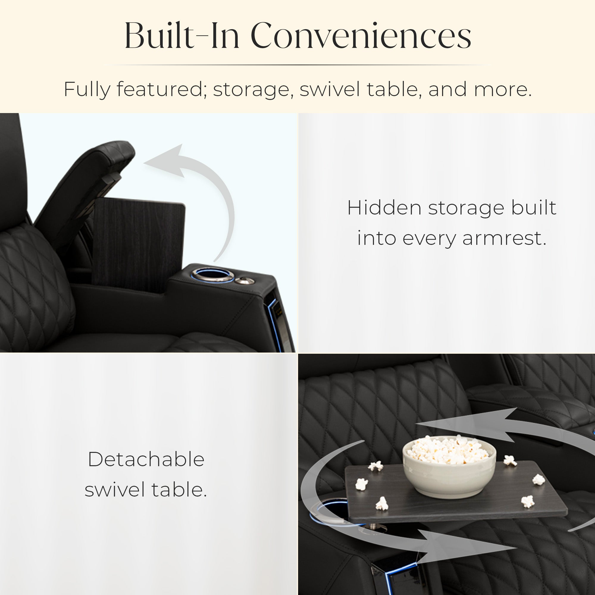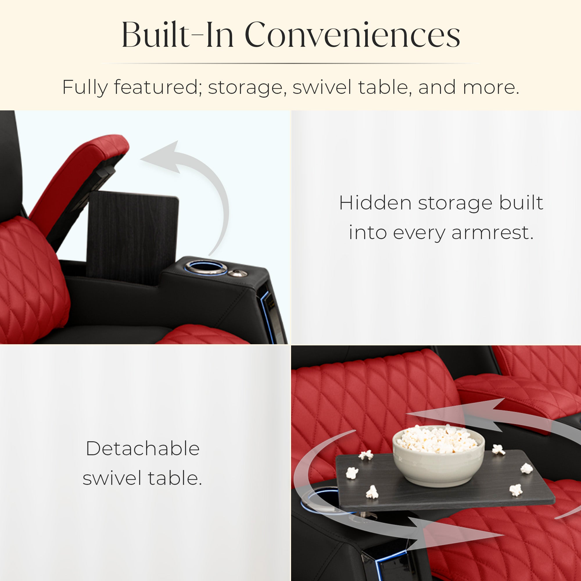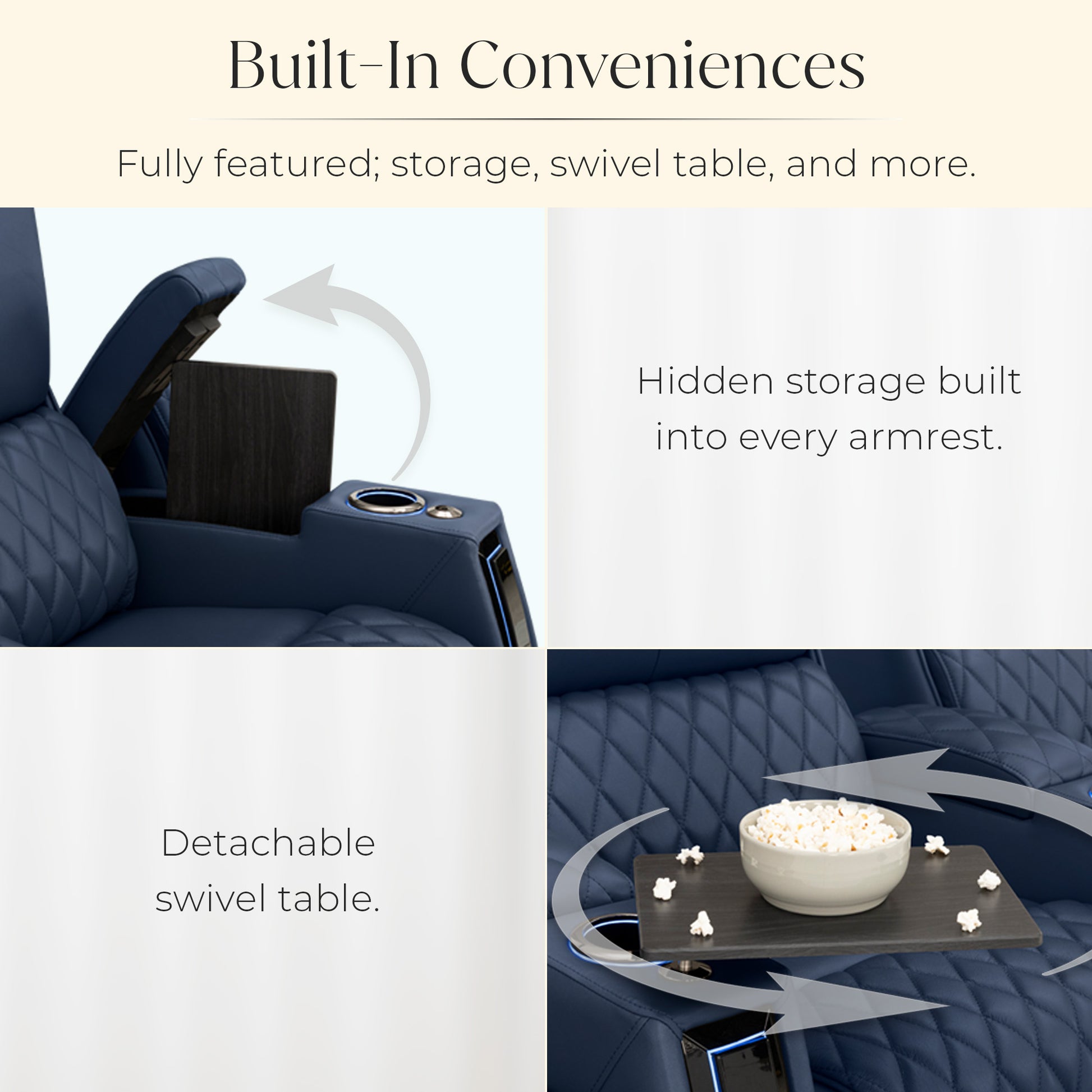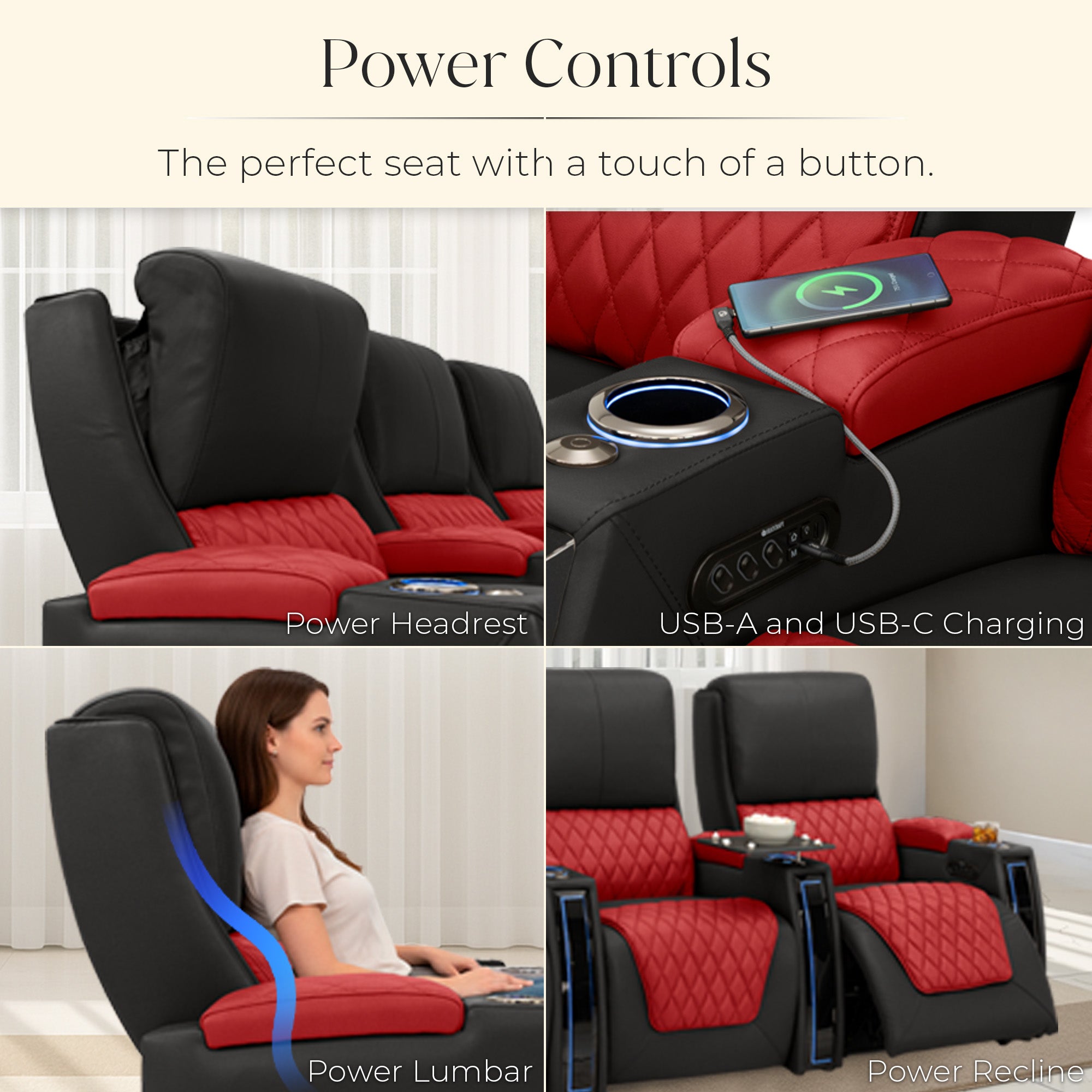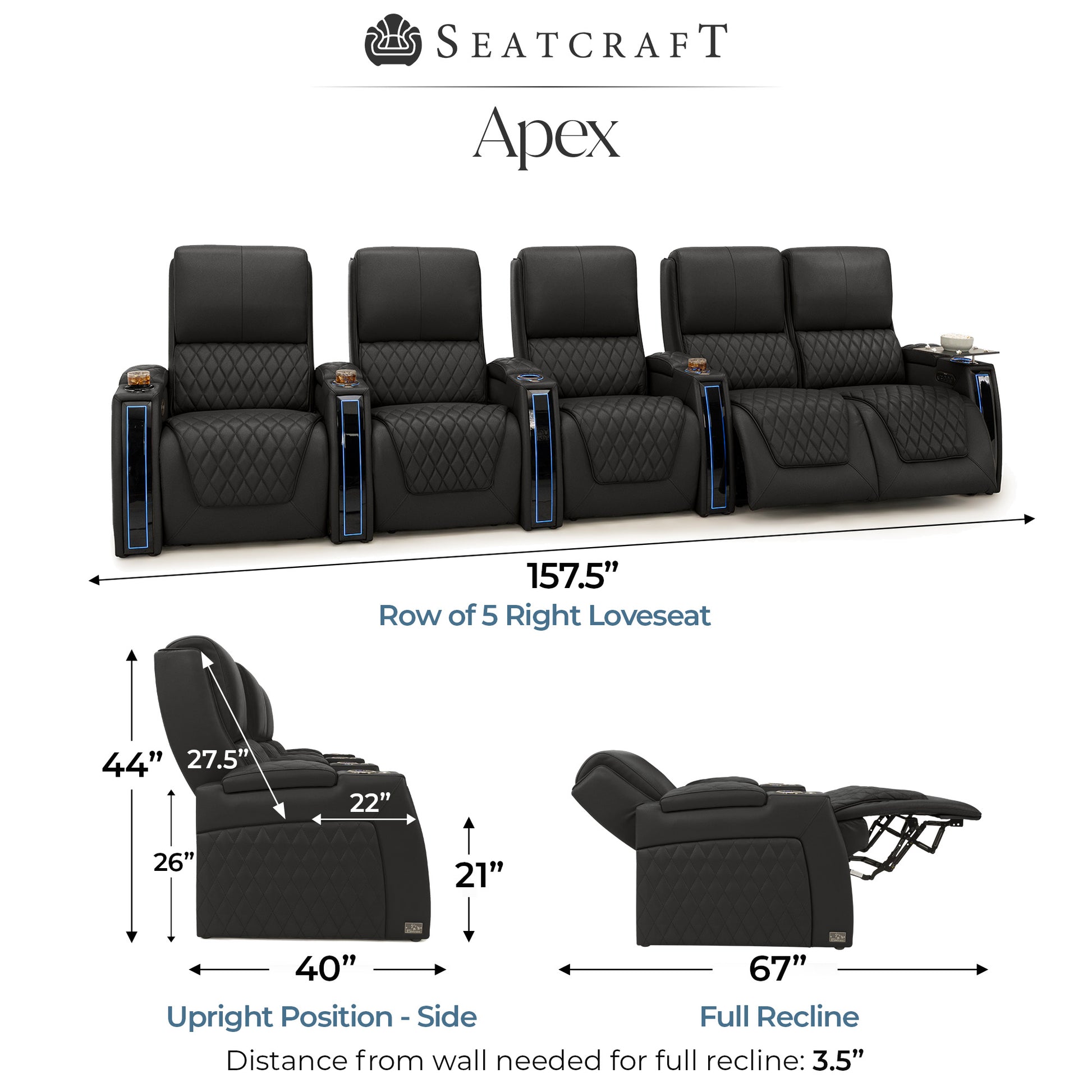 Designed specifically for home theaters and media rooms, not standard living room seating. The proportions, support, and recline angles are engineered to enhance long movie nights and immersive viewing.