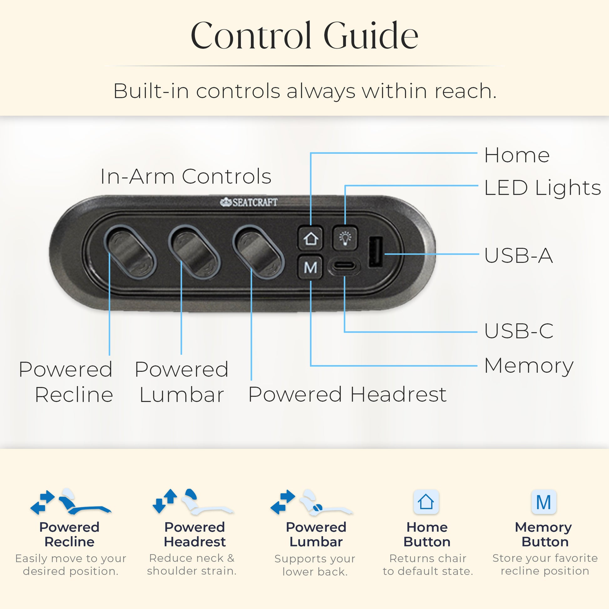 Since 1997, Seatcraft has designed and engineered home theater seating in California, blending durability, comfort, and intuitive features to elevate the viewing experience.